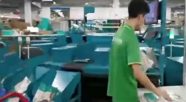 海明公司圆盘分拣机在电商仓库自动分拣封包的应用